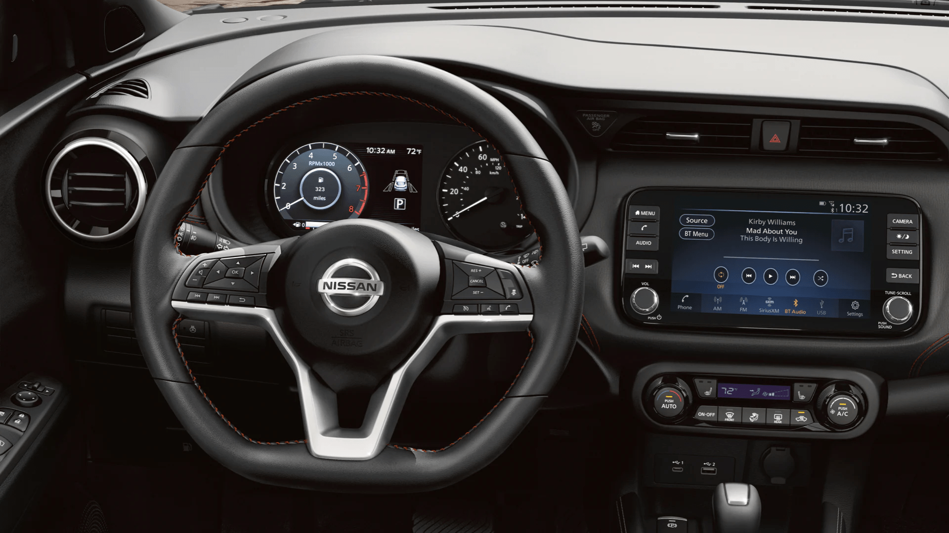 From the new available center armrest to a new larger available 8" customizable color touch-screen display, the 2022 Kicks® interior was updated to put you first. Details like a D-shaped steering wheel and available distinctive contrast stitching make you and your crew feel like the center of attention.